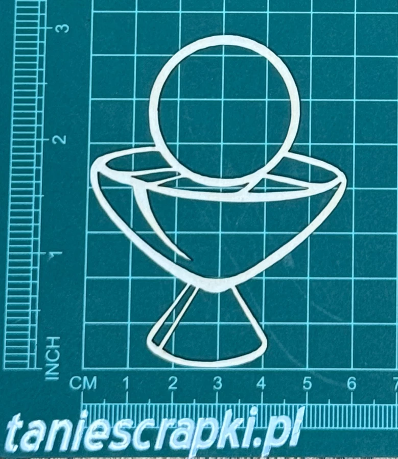 Kielich komunijny Scrapek - tekturka wycięty laserem z beermaty o grubości 1,5 mm. Wymiary jak na zdjęciu. Kod produktu to: LBA00352