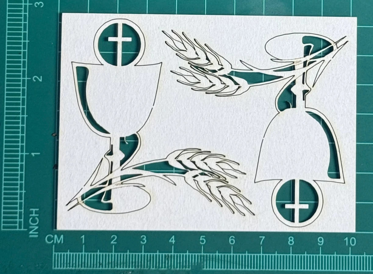 Kielichy Komunijne Scrapek - tekturka wycięty laserem z beermaty o grubości 1,5 mm. Wymiary jak na zdjęciu. Kod produktu to: LBA01183