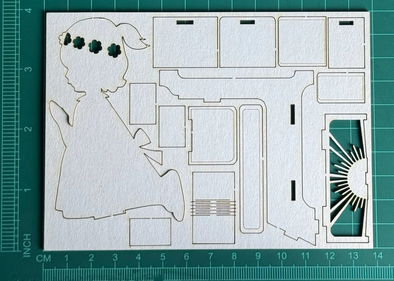 Klęcznik komunijny z dziewczyną połowka Scrapek - tekturka wycięty laserem z beermaty o grubości 1,5 mm. Wymiary jak na zdjęciu. Kod produktu to: LBA01260