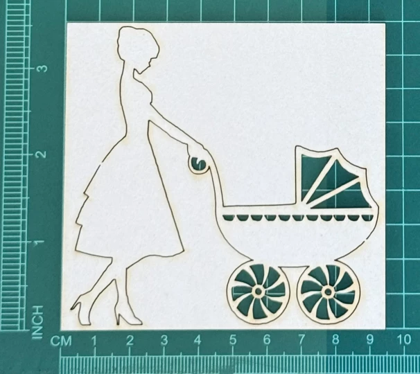 Kobieta z wózkiem Scrapek - tekturka wycięty laserem z beermaty o grubości 1,5 mm. Wymiary jak na zdjęciu. Kod produktu to: LBA00877
