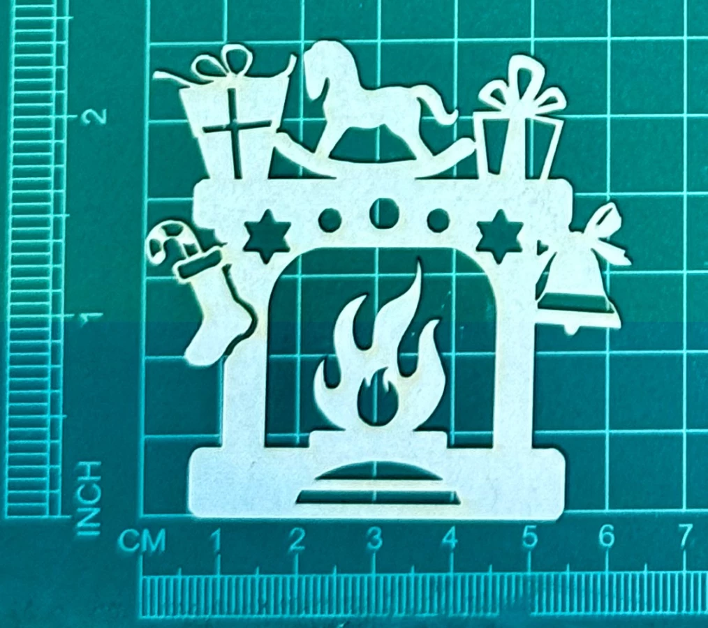 Kominek Świąteczny Scrapek - tekturka wycięty laserem z beermaty o grubości 1,5 mm. Wymiary jak na zdjęciu. Kod produktu to: LBA01067