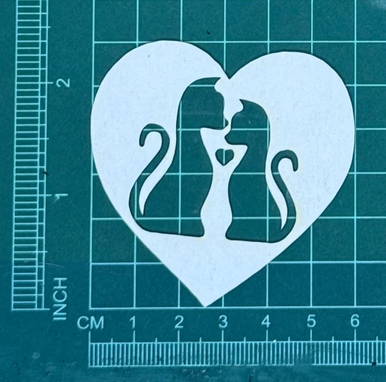 Koty w serduszku Scrapek - tekturka wycięty laserem z beermaty o grubości 1,5 mm. Wymiary jak na zdjęciu. Kod produktu to: LBA00999