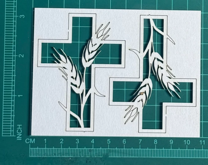 Krzyż z kłosem Scrapek - tekturka wycięty laserem z beermaty o grubości 1,5 mm. Wymiary jak na zdjęciu. Kod produktu to: LBA01190