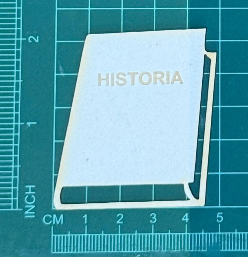 Książka z napisem Historia Scrapek - tekturka wycięty laserem z beermaty o grubości 1,5 mm. Wymiary jak na zdjęciu. Kod produktu to: LBA00510
