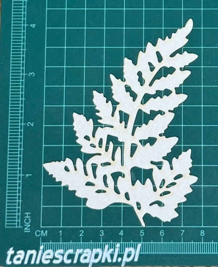Lisć paproci Scrapek - tekturka wycięty laserem z beermaty o grubości 1,5 mm. Wymiary jak na zdjęciu. Kod produktu to: LBA00030