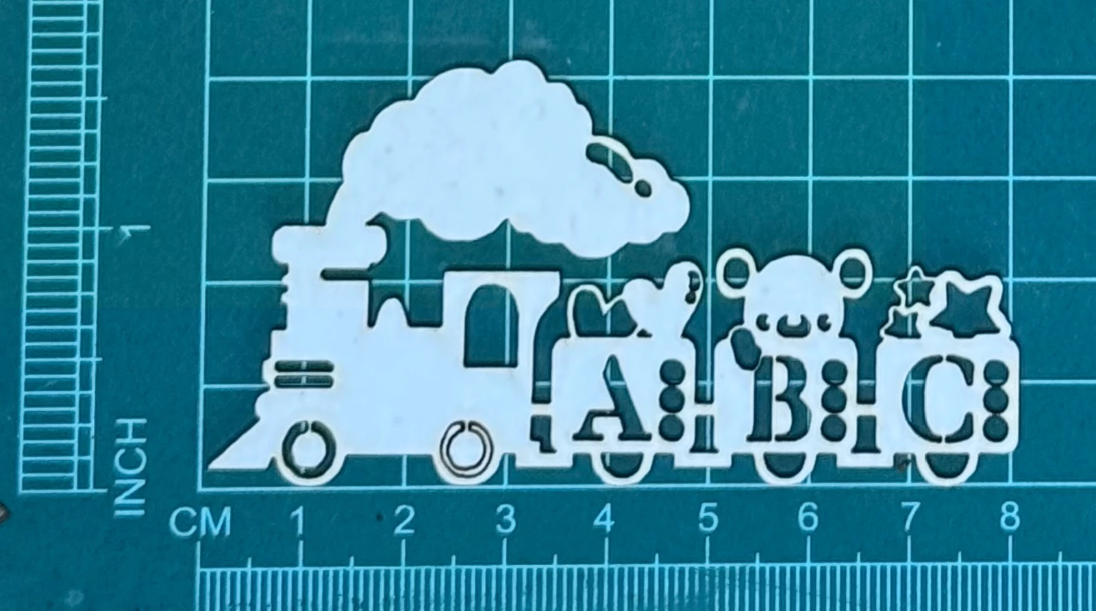 Lokomotywa z wagonami Scrapek - tekturka wycięty laserem z beermaty o grubości 1,5 mm. Wymiary jak na zdjęciu. Kod produktu to: LBA00913
