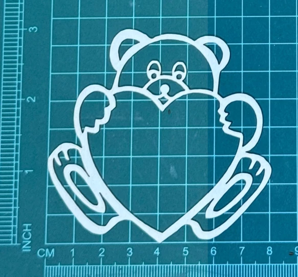 Miś z serduszkiem Scrapek - tekturka wycięty laserem z beermaty o grubości 1,5 mm. Wymiary jak na zdjęciu. Kod produktu to: LBA00849