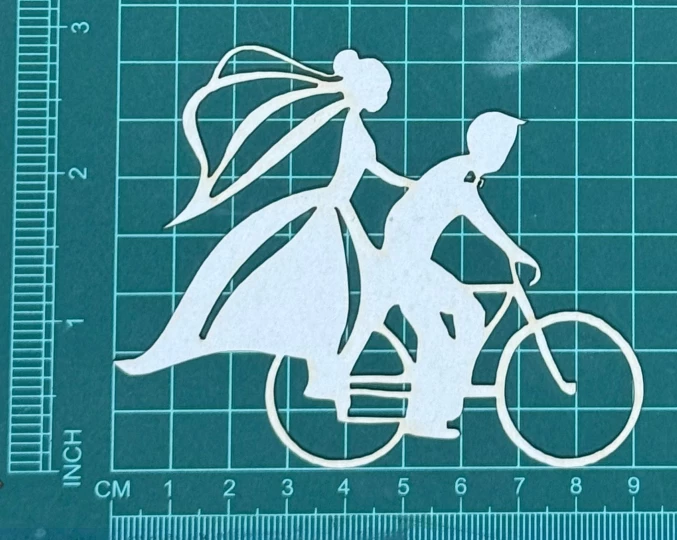 Młoda Para na rowerze Scrapek - tekturka wycięty laserem z beermaty o grubości 1,5 mm. Wymiary jak na zdjęciu. Kod produktu to: LBA00972