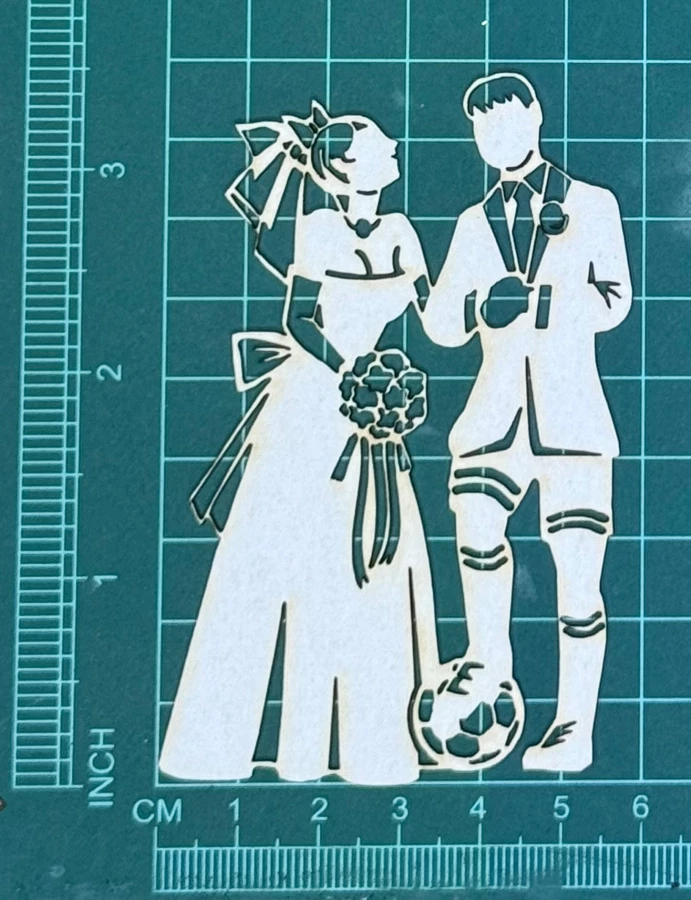 Młoda Para piłkarska Scrapek - tekturka wycięty laserem z beermaty o grubości 1,5 mm. Wymiary jak na zdjęciu. Kod produktu to: LBA00958