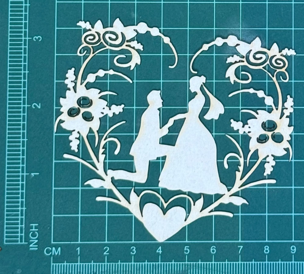 Młoda para w serduszku Scrapek - tekturka wycięty laserem z beermaty o grubości 1,5 mm. Wymiary jak na zdjęciu. Kod produktu to: LBA00954