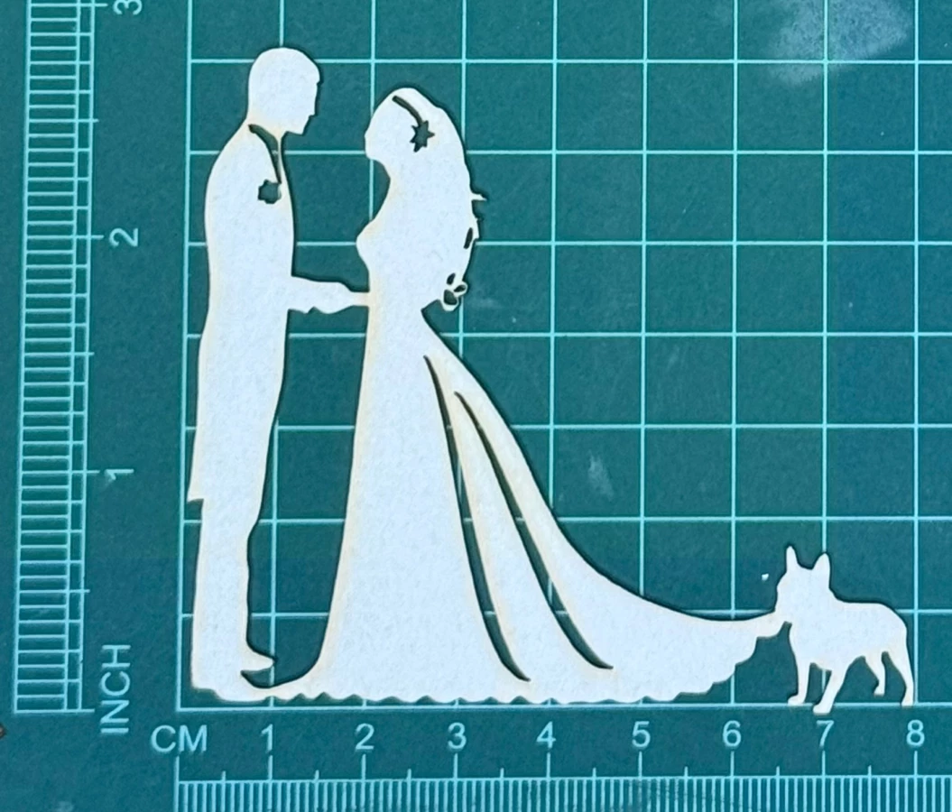Młoda Para z psem Scrapek - tekturka wycięty laserem z beermaty o grubości 1,5 mm. Wymiary jak na zdjęciu. Kod produktu to: LBA00964