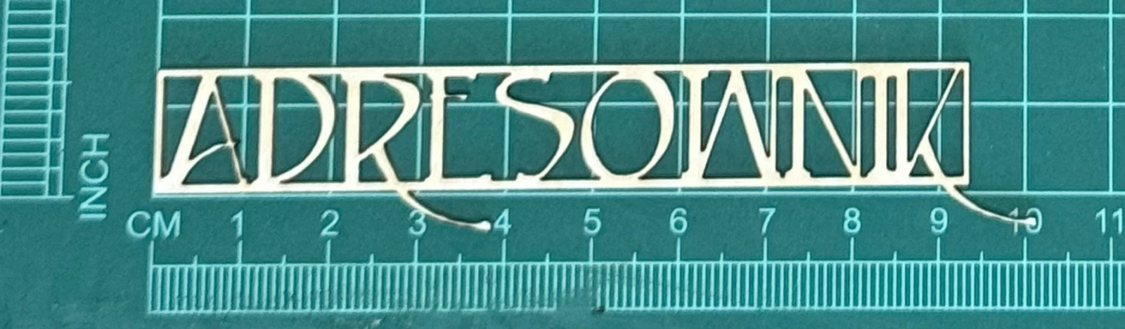 Napis Adresownik Scrapek - tekturka wycięty laserem z beermaty o grubości 1,5 mm. Wymiary jak na zdjęciu. Kod produktu to: LBA00741
