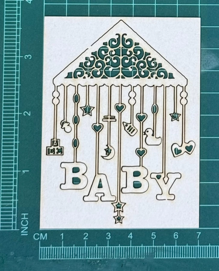 Napis Baby Scrapek - tekturka wycięty laserem z beermaty o grubości 1,5 mm. Wymiary jak na zdjęciu. Kod produktu to: LBA00902