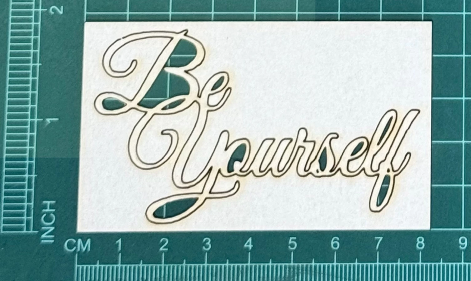Napis Be yourself Scrapek - tekturka wycięty laserem z beermaty o grubości 1,5 mm. Wymiary jak na zdjęciu. Kod produktu to: LBA00770