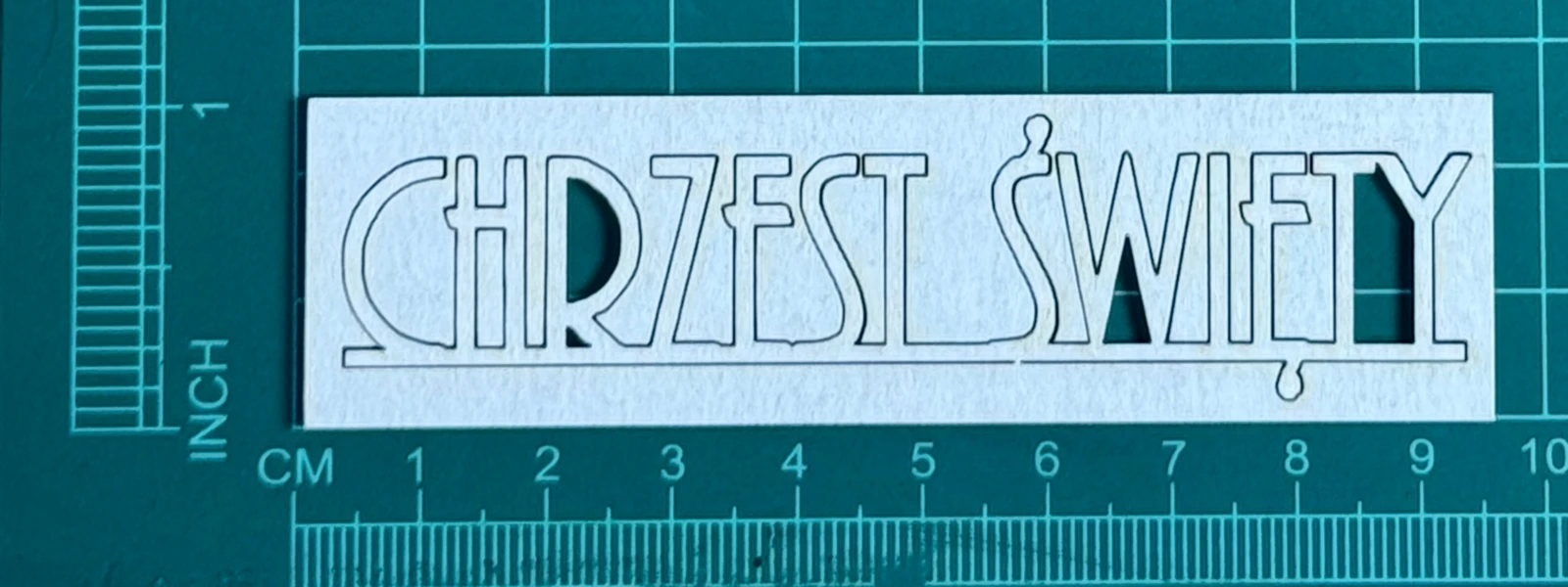 Napis Chrzest Święty Scrapek - tekturka wycięty laserem z beermaty o grubości 1,5 mm. Wymiary jak na zdjęciu. Kod produktu to: LBA01128