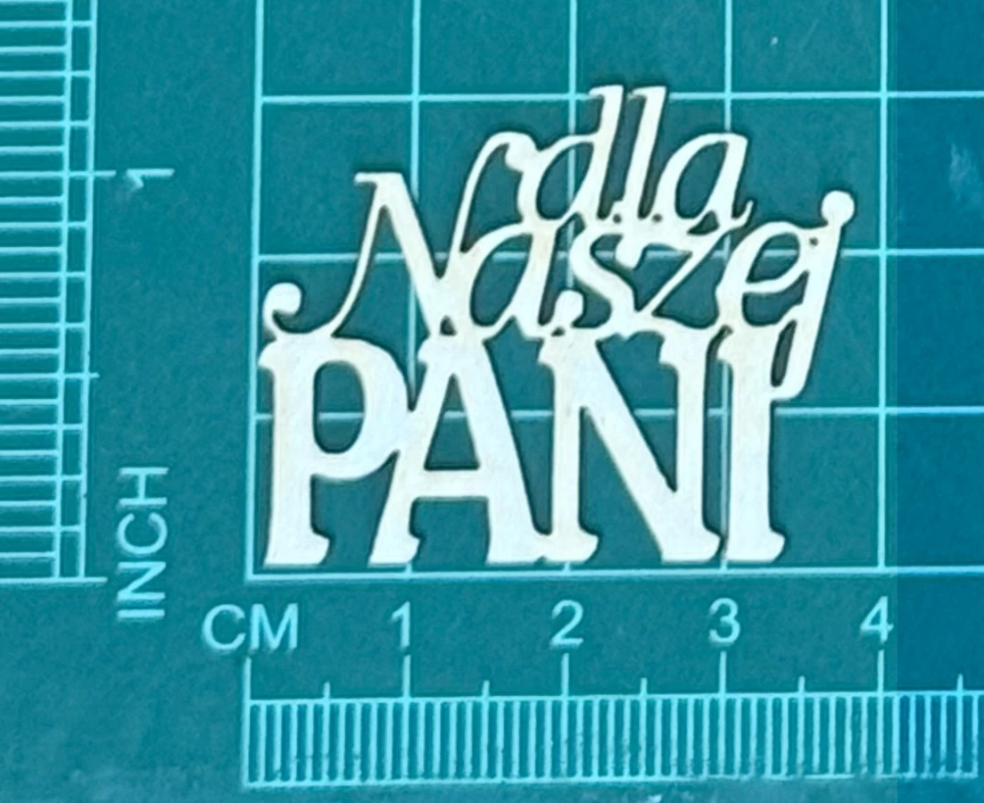 Napis Dla Naszej Pani Scrapek - tekturka wycięty laserem z beermaty o grubości 1,5 mm. Wymiary jak na zdjęciu. Kod produktu to: LBA00506