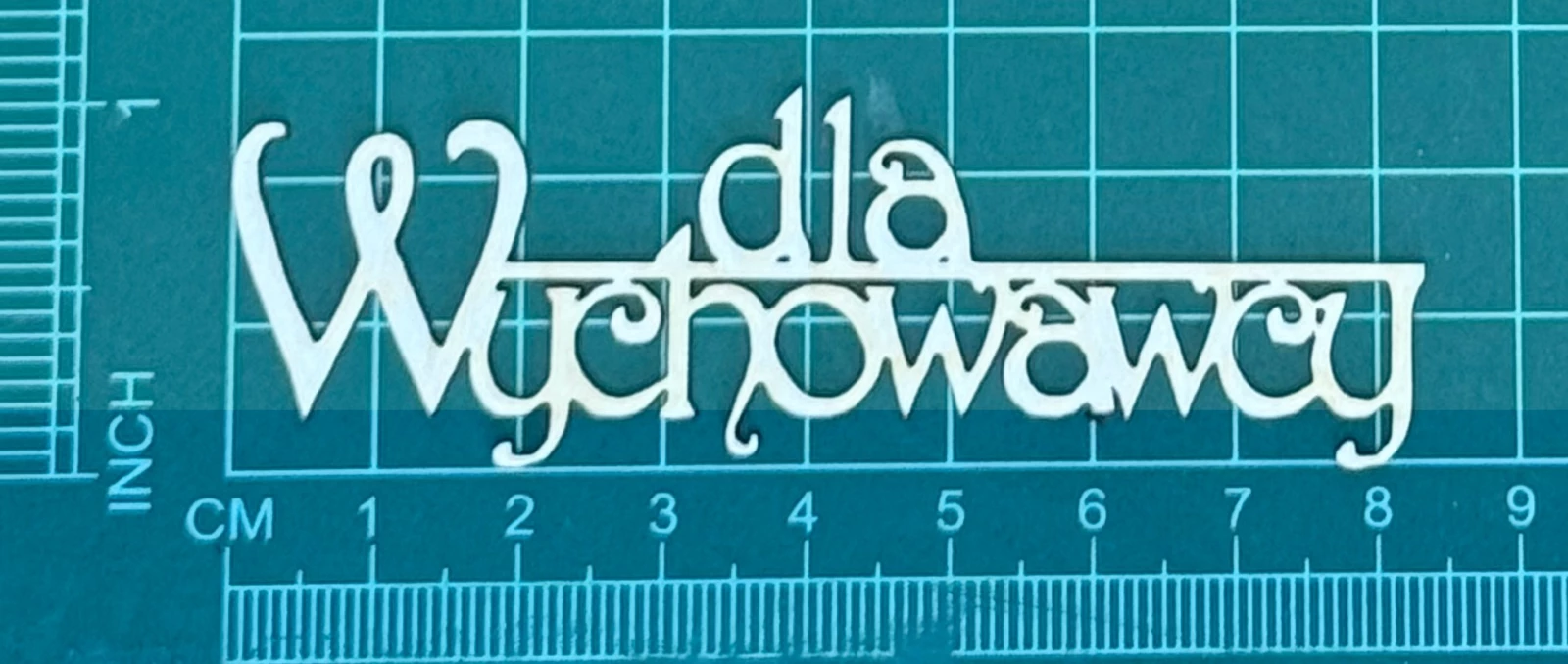 Napis Dla Wychowawcy Scrapek - tekturka wycięty laserem z beermaty o grubości 1,5 mm. Wymiary jak na zdjęciu. Kod produktu to: LBA00505