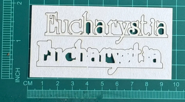 Napis Eucharystia 2d Scrapek - tekturka wycięty laserem z beermaty o grubości 1,5 mm. Wymiary jak na zdjęciu. Kod produktu to: LBA01209