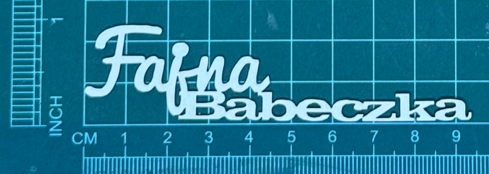 Napis Fajna Babeczka Scrapek - tekturka wycięty laserem z beermaty o grubości 1,5 mm. Wymiary jak na zdjęciu. Kod produktu to: LBA01040