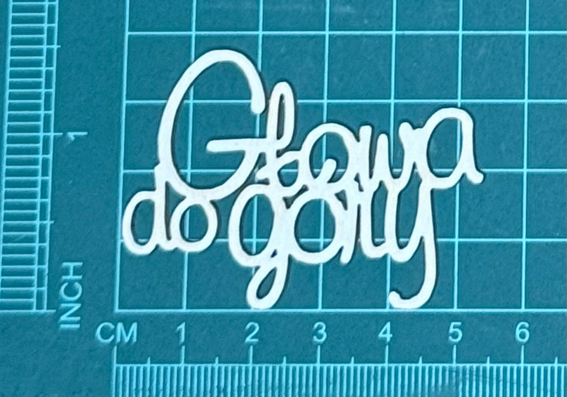 Napis Głowa do góry Scrapek - tekturka wycięty laserem z beermaty o grubości 1,5 mm. Wymiary jak na zdjęciu. Kod produktu to: LBA00817