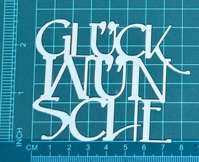 Napis Gluck wun sclie Scrapek - tekturka wycięty laserem z beermaty o grubości 1,5 mm. Wymiary jak na zdjęciu. Kod produktu to: LBA00830