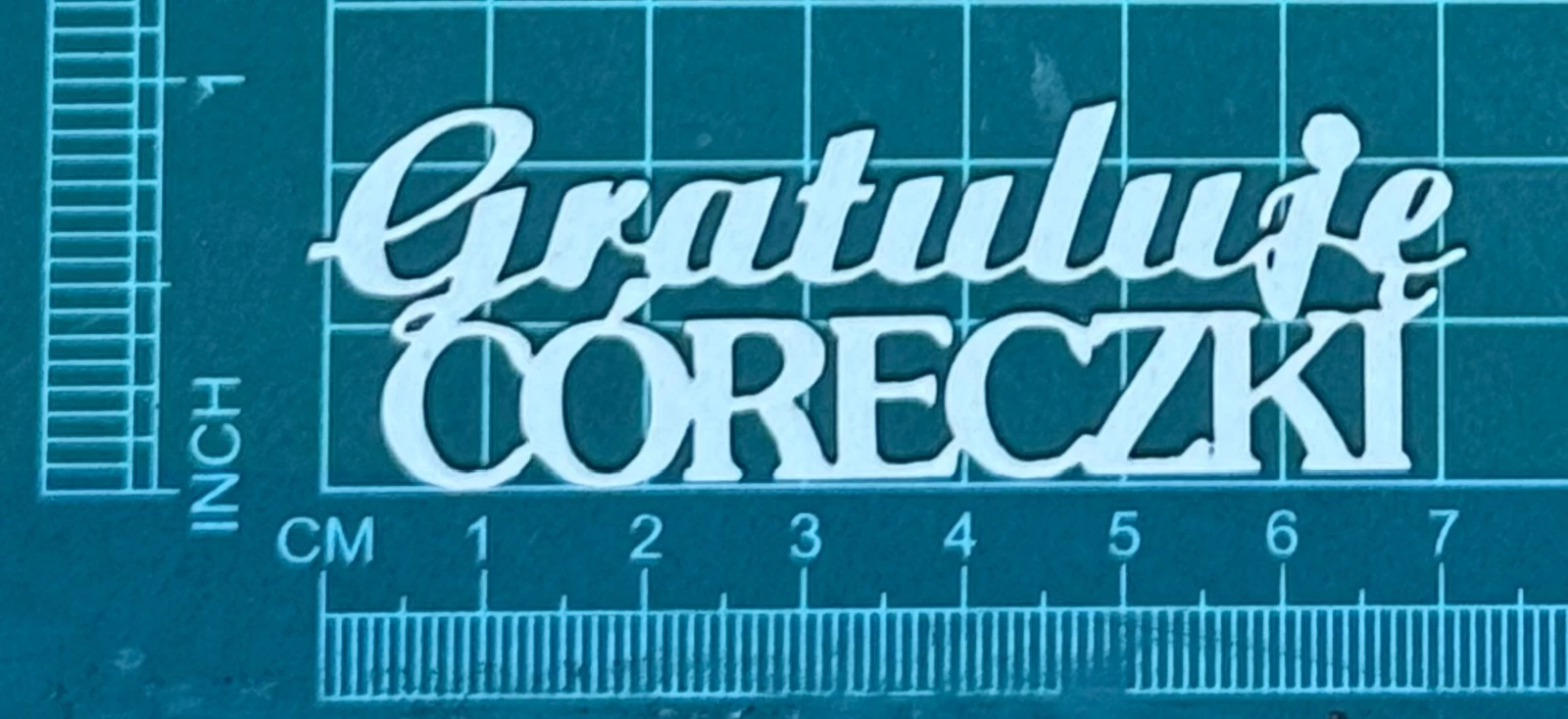 Napis Gratuluję Córeczki Scrapek - tekturka wycięty laserem z beermaty o grubości 1,5 mm. Wymiary jak na zdjęciu. Kod produktu to: LBA01037