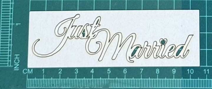 Napis Just Married Scrapek - tekturka wycięty laserem z beermaty o grubości 1,5 mm. Wymiary jak na zdjęciu. Kod produktu to: LBA00785