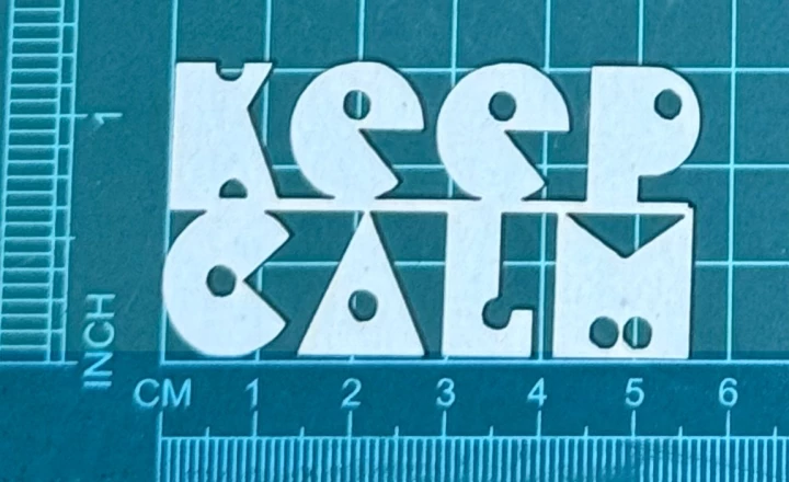 Napis KEEP CALM Scrapek - tekturka wycięty laserem z beermaty o grubości 1,5 mm. Wymiary jak na zdjęciu. Kod produktu to: LBA00814