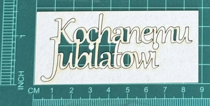 Napis Kochanemu Jubilatowi Scrapek - tekturka wycięty laserem z beermaty o grubości 1,5 mm. Wymiary jak na zdjęciu. Kod produktu to: LBA00765