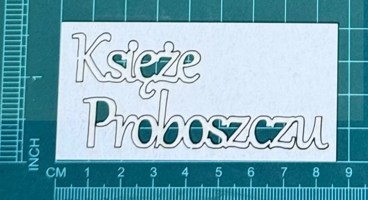 Napis Księże Proboszczu Scrapek - tekturka wycięty laserem z beermaty o grubości 1,5 mm. Wymiary jak na zdjęciu. Kod produktu to: LBA00796
