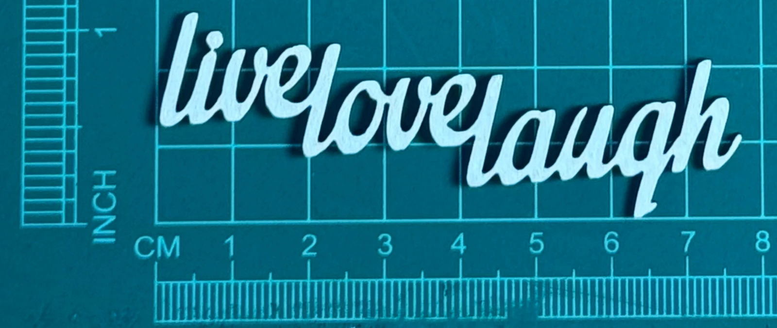 Napis Live Love Laugh Scrapek - tekturka wycięty laserem z beermaty o grubości 1,5 mm. Wymiary jak na zdjęciu. Kod produktu to: LBA01165