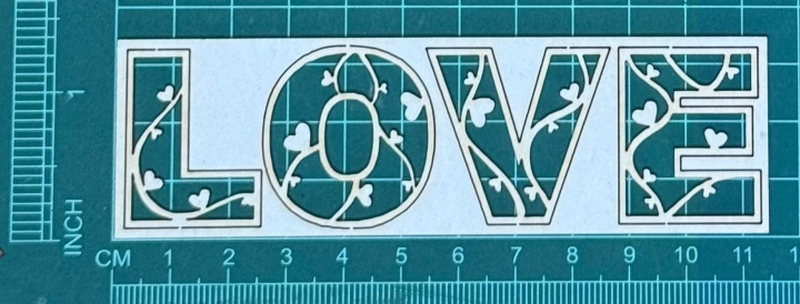 Napis LOVE Scrapek - tekturka wycięty laserem z beermaty o grubości 1,5 mm. Wymiary jak na zdjęciu. Kod produktu to: LBA00946