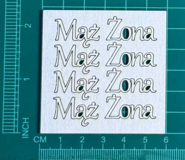 Napis Mąż Żona komplet Scrapek - tekturka wycięty laserem z beermaty o grubości 1,5 mm. Wymiary jak na zdjęciu. Kod produktu to: LBA01091