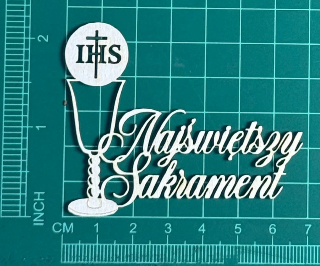 Napis Najświętrzy sakrament Scrapek - tekturka wycięty laserem z beermaty o grubości 1,5 mm. Wymiary jak na zdjęciu. Kod produktu to: LBA01178