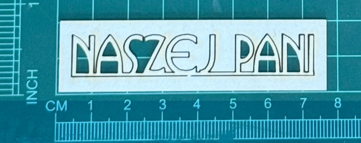 Napis Naszej Pani Scrapek - tekturka wycięty laserem z beermaty o grubości 1,5 mm. Wymiary jak na zdjęciu. Kod produktu to: LBA00498
