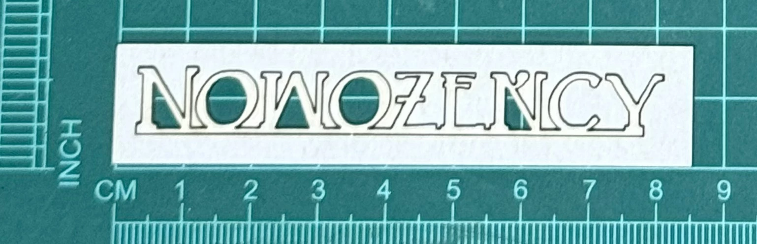Napis Nowożeńcy Scrapek - tekturka wycięty laserem z beermaty o grubości 1,5 mm. Wymiary jak na zdjęciu. Kod produktu to: LBA00779