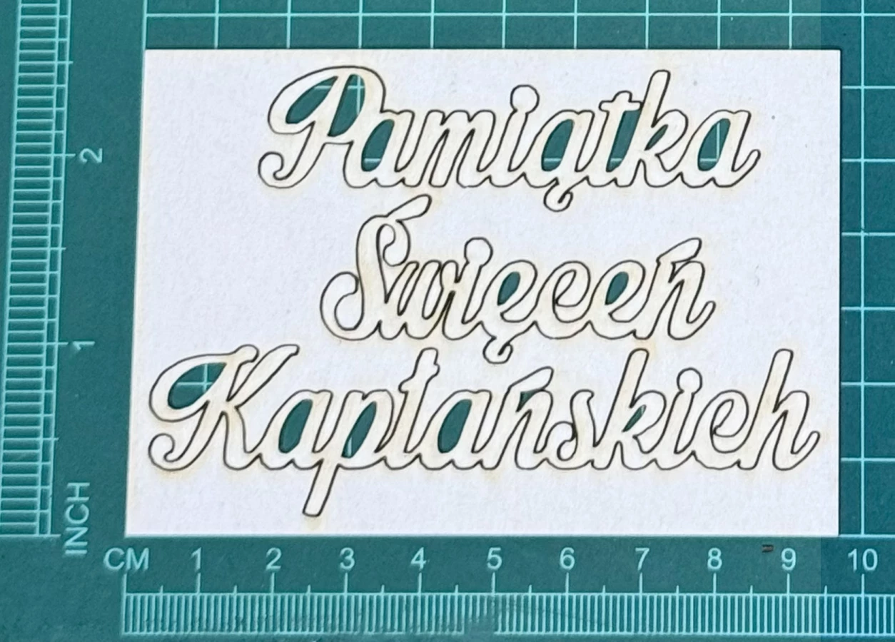 Napis Pamiątka Święceń Kapłańskich Scrapek - tekturka wycięty laserem z beermaty o grubości 1,5 mm. Wymiary jak na zdjęciu. Kod produktu to: LBA00827