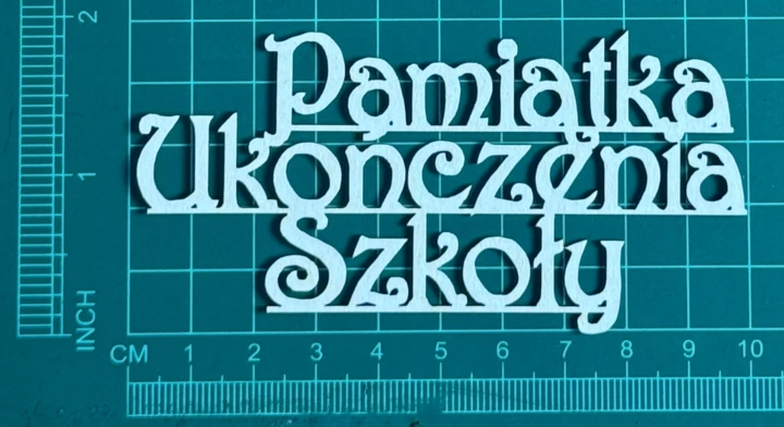 Napis Pamiątka ukończenia szkoły Scrapek - tekturka wycięty laserem z beermaty o grubości 1,5 mm. Wymiary jak na zdjęciu. Kod produktu to: LBA01156