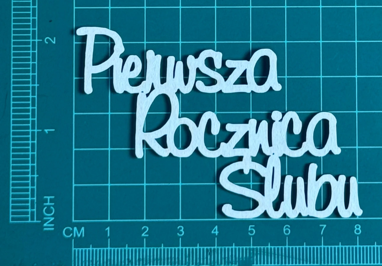 Napis Pierwsza Rocznica Ślubu Scrapek - tekturka wycięty laserem z beermaty o grubości 1,5 mm. Wymiary jak na zdjęciu. Kod produktu to: LBA01157