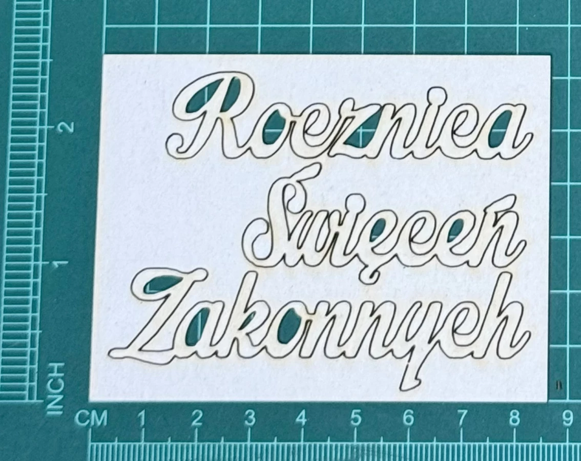 Napis Rocznica Święceń Kapłańskich Scrapek - tekturka wycięty laserem z beermaty o grubości 1,5 mm. Wymiary jak na zdjęciu. Kod produktu to: LBA00826