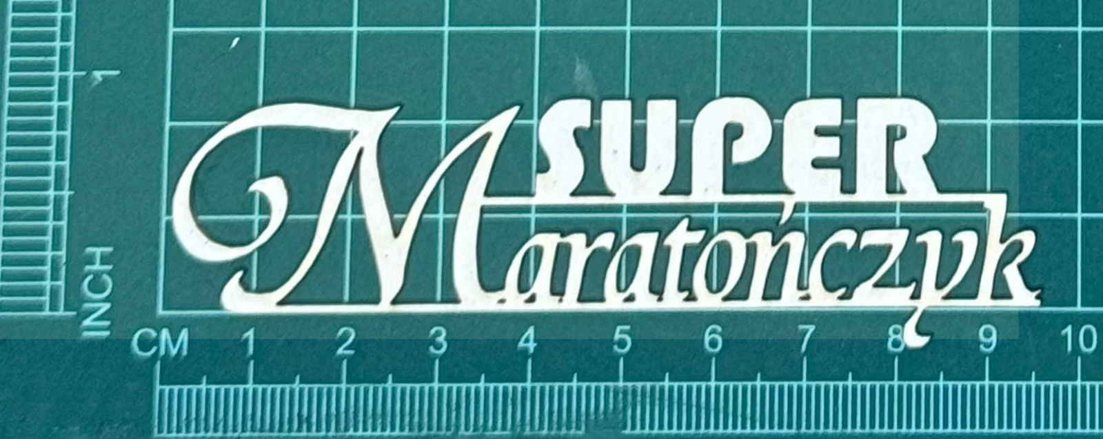 Napis Super maratończyk Scrapek - tekturka wycięty laserem z beermaty o grubości 1,5 mm. Wymiary jak na zdjęciu. Kod produktu to: LBA00735