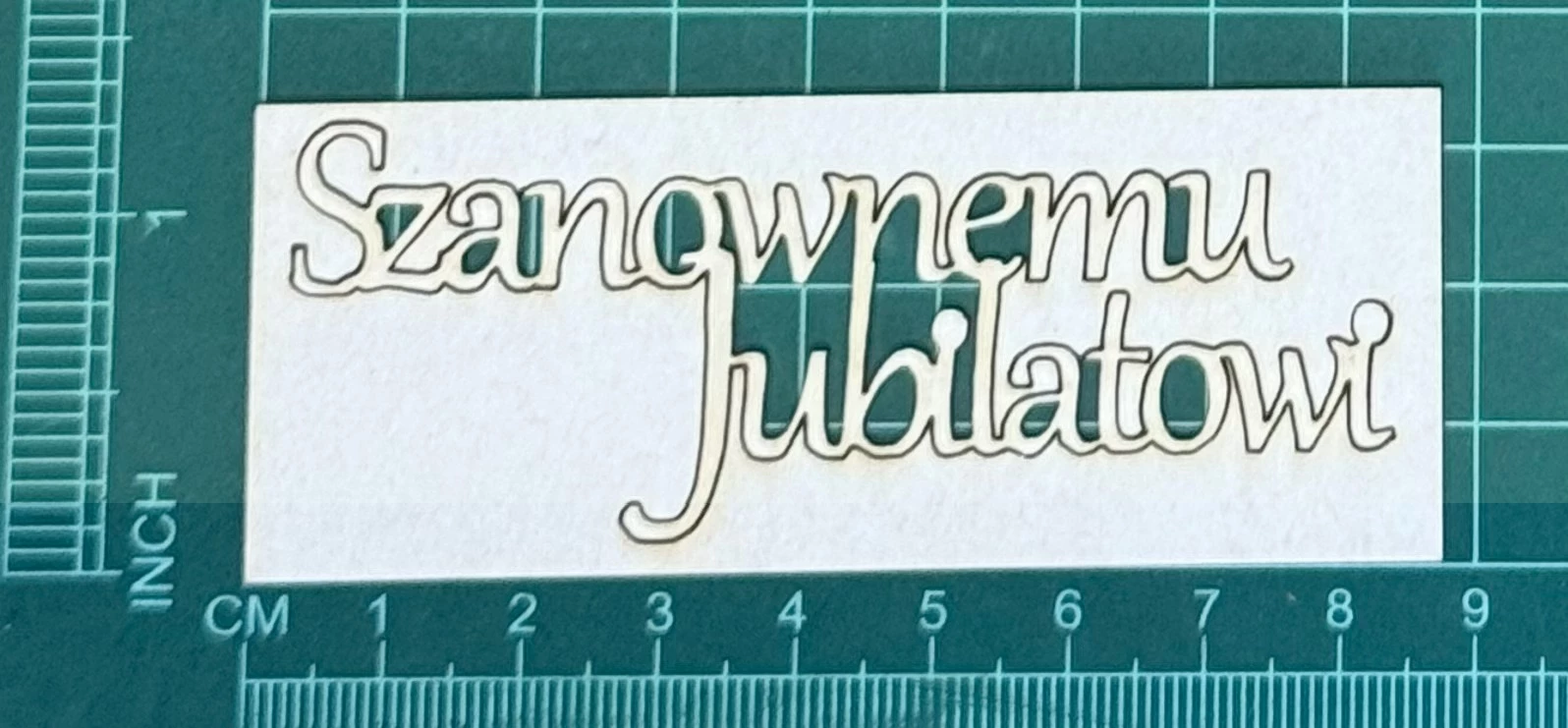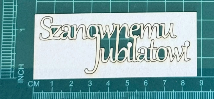 Napis Szanownemu Jubilatowi Scrapek - tekturka wycięty laserem z beermaty o grubości 1,5 mm. Wymiary jak na zdjęciu. Kod produktu to: LBA00776
