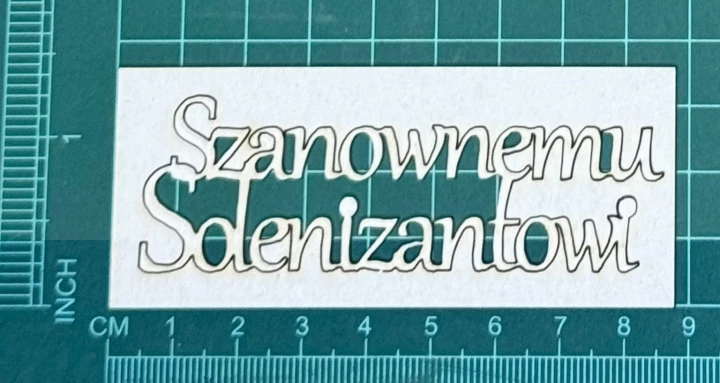 Napis Szanownemu Solenizantowi Scrapek - tekturka wycięty laserem z beermaty o grubości 1,5 mm. Wymiary jak na zdjęciu. Kod produktu to: LBA00784