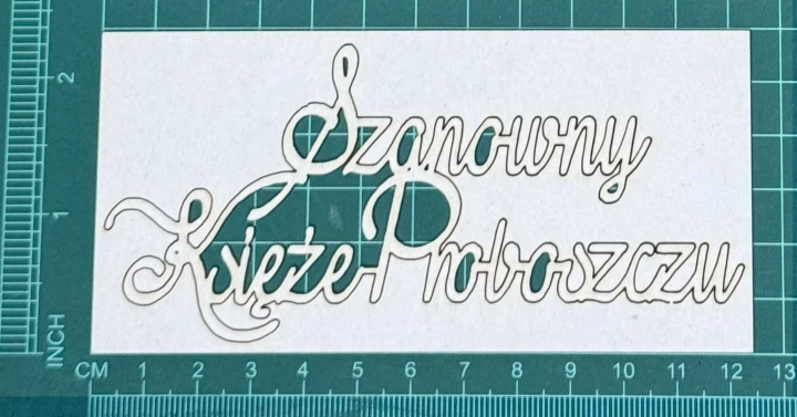 Napis Szanowny Księże Proboszczu Scrapek - tekturka wycięty laserem z beermaty o grubości 1,5 mm. Wymiary jak na zdjęciu. Kod produktu to: LBA00795