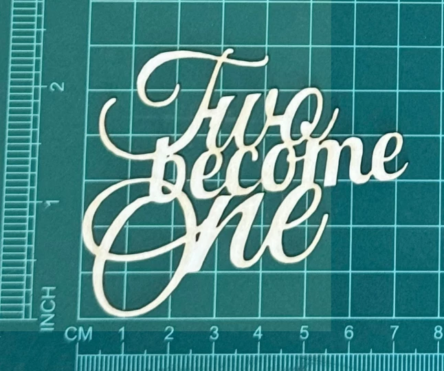 Napis Two become One Scrapek - tekturka wycięty laserem z beermaty o grubości 1,5 mm. Wymiary jak na zdjęciu. Kod produktu to: LBA00747