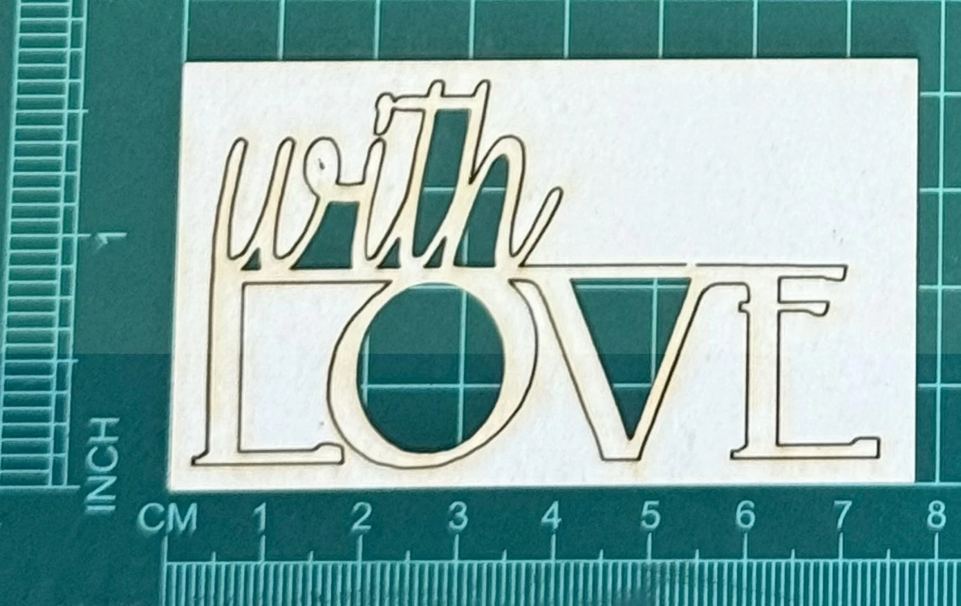 Napis with Love Scrapek - tekturka wycięty laserem z beermaty o grubości 1,5 mm. Wymiary jak na zdjęciu. Kod produktu to: LBA00750