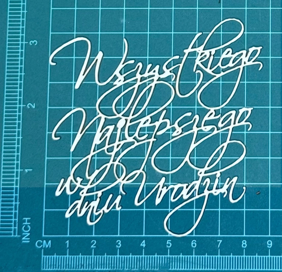 Napis Wszystkiego Najlepszego w dniu urodzin Scrapek - tekturka wycięty laserem z beermaty o grubości 1,5 mm. Wymiary jak na zdjęciu. Kod produktu to: LBA00806