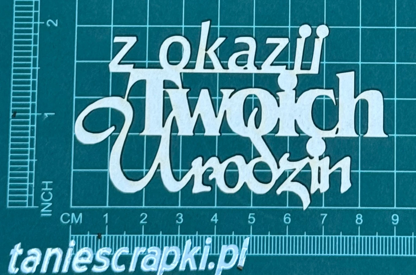 Napis Z okazji Twoich urodzin Scrapek - tekturka wycięty laserem z beermaty o grubości 1,5 mm. Wymiary jak na zdjęciu. Kod produktu to: LBA00419