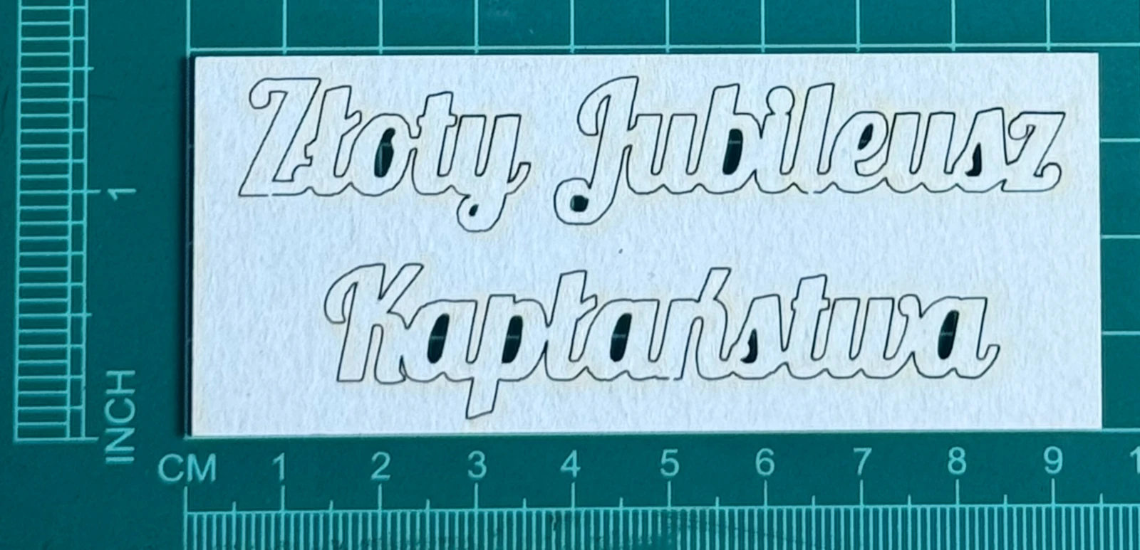 Napis Złoty Jubileusz Kapłaństwa Scrapek - tekturka wycięty laserem z beermaty o grubości 1,5 mm. Wymiary jak na zdjęciu. Kod produktu to: LBA01148