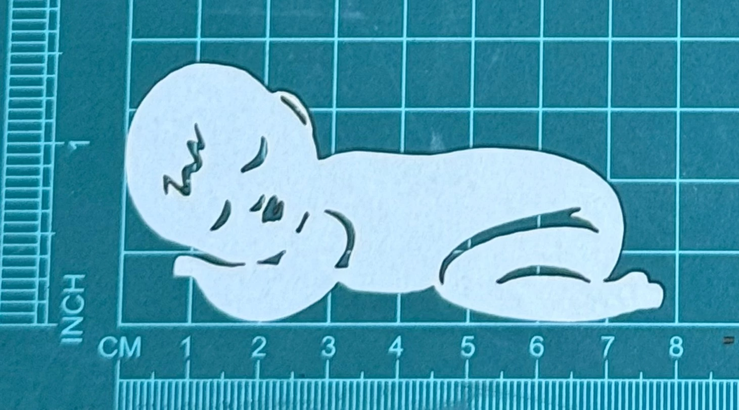 Niemowlak Scrapek - tekturka wycięty laserem z beermaty o grubości 1,5 mm. Wymiary jak na zdjęciu. Kod produktu to: LBA00836